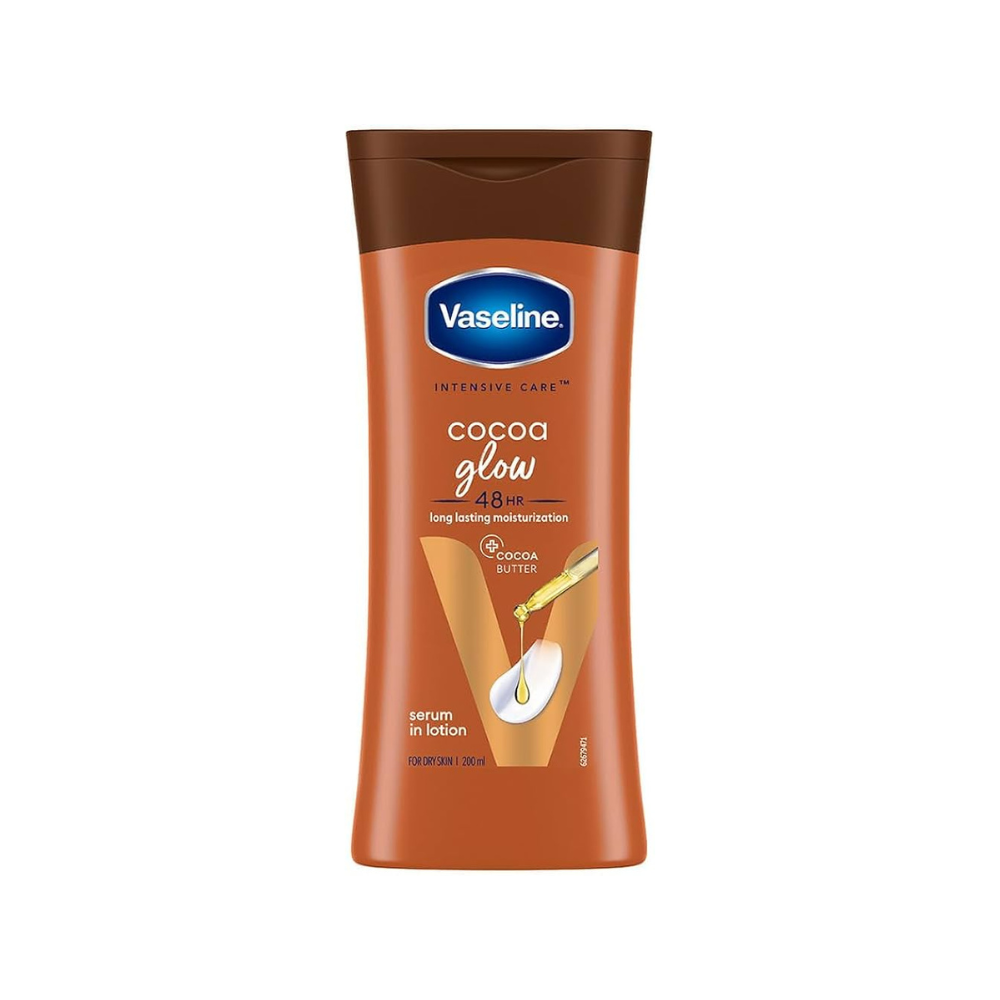 Vaseline Intensive Care Cocoa Glow Body Lotion is a moisturizing formula designed to deeply hydrate the skin while imparting a radiant glow. Enriched with cocoa butter, known for its nourishing and skin-softening properties, this lotion aims to leave the skin feeling smooth, supple, and with a healthy, luminous sheen. Its formulation is designed for quick absorption and non-greasy feel, making it ideal for daily use to maintain moisturized and glowing skin.